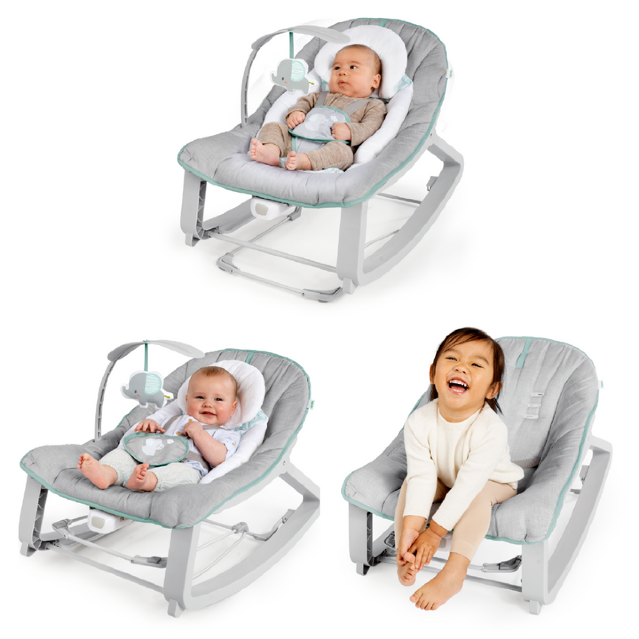 • The Ingenuity Keep Cozy Baby Bouncer, Rocker & Toddler Seat has 3 modes for parent convenience and baby preference: bouncing, rocking, and stationary seat (kickstand at the rear of the chair)